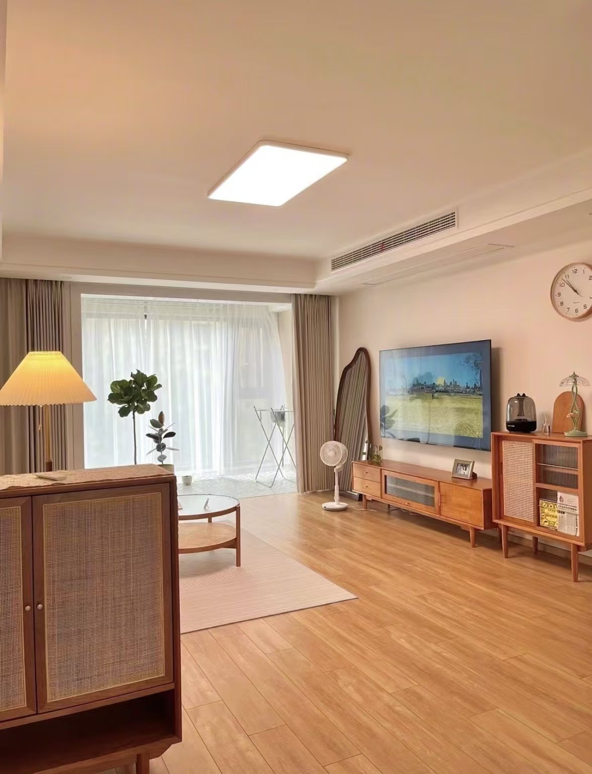 在软装饰方面,碎花元素不可或缺。窗帘选用浅色系的小碎花图案,阳光透过,洒下斑驳的光影,营造出一种静谧的氛围。床上用品也可以是柔软的纯棉碎花套件,让每一个夜晚都充满田园的甜梦。绿植更是原木田园风的灵魂点缀,几盆绿萝、吊兰或者多肉植物,错落有致地放置在窗台、茶几、书架上,为整个空间注入生机与活力,仿佛将室外的花园引入了室内。