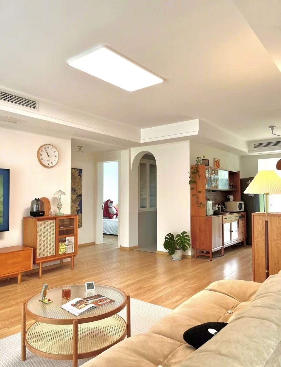 灯光的设计也为原木田园风增色不少。暖黄色的灯光透过纸质或木质灯罩散发出来,柔和而不刺眼,在夜晚营造出温馨、惬意的氛围,让疲惫的身心瞬间得到放松。
